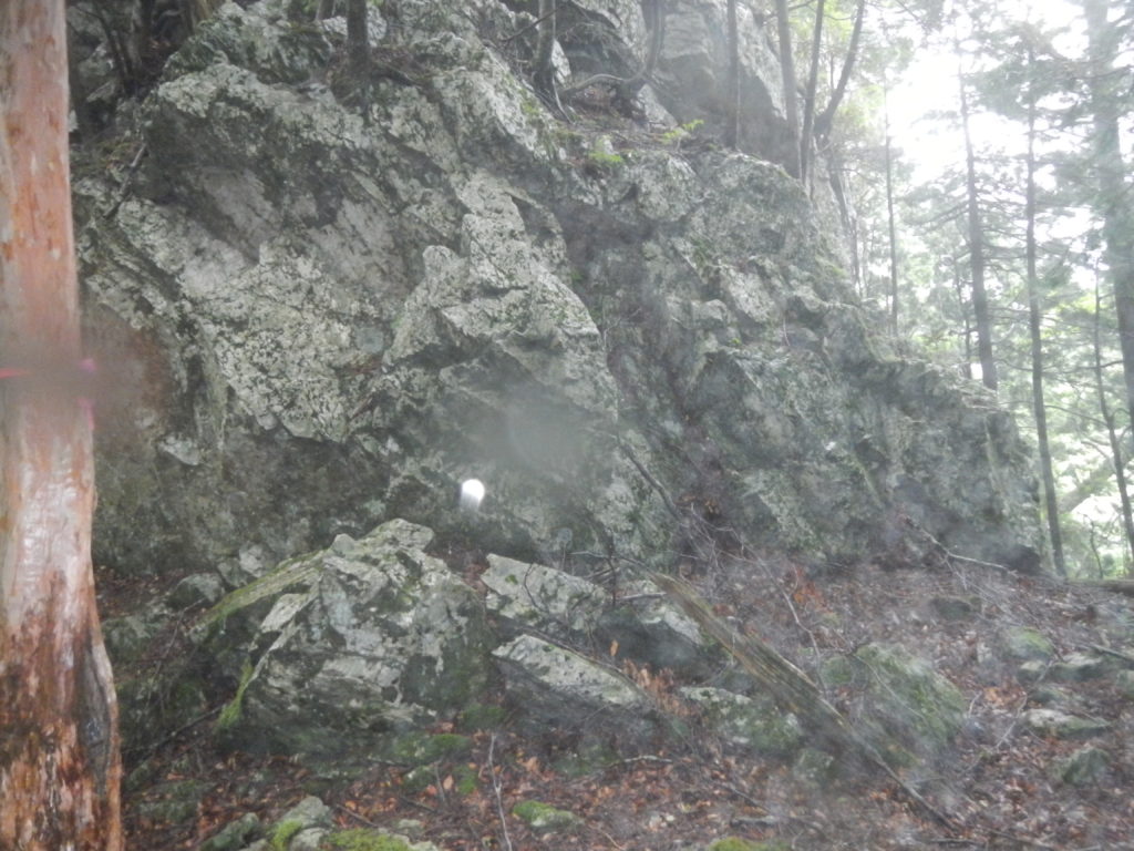 そうこうしているうちに幸次郎窟という場所に到着する。左はハングした絶壁で奥にあるであろう滝の落ちる音が聞こえる。洞窟のような幻想的な場所でしばしザックをおろして滝見学をする。