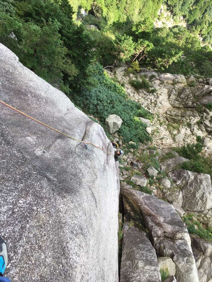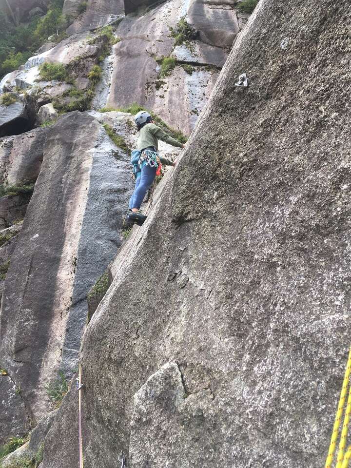 アルパインお弟子さんマルチ修行第二弾。 御在所岳中尾根バットレス カルフォルニアドリーミング 1回目3ピッチまで、2回目に最後まで登るつもりでしたが5ピッチ目までで時間切れ。 今まで何回か登っていますが一ピッチ目のスラブでヌンチャク掴んでしまっていたので今回はムーブ解決してレッドポイント。お弟子さんも下部のスラブは全てレッドポイント。流石。