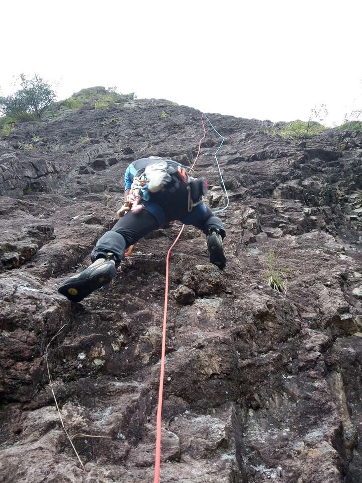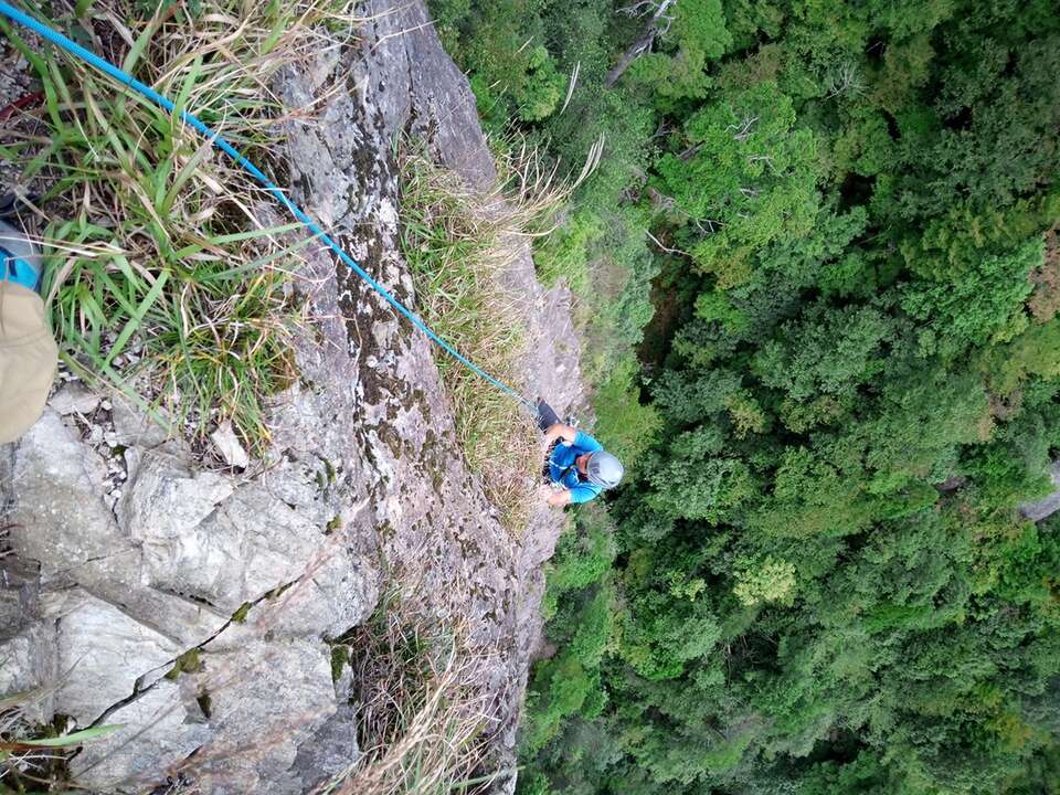 その後、三峰岳の友人登路5.11bへ。残念ながら一ピッチ目でテンションしてしまいオンサイトならず、、カチホールド一個見逃した、、残りの危な怖いピッチは私が担当し、ハイライトの3ピッチ目はお弟子さんがオンサイト。