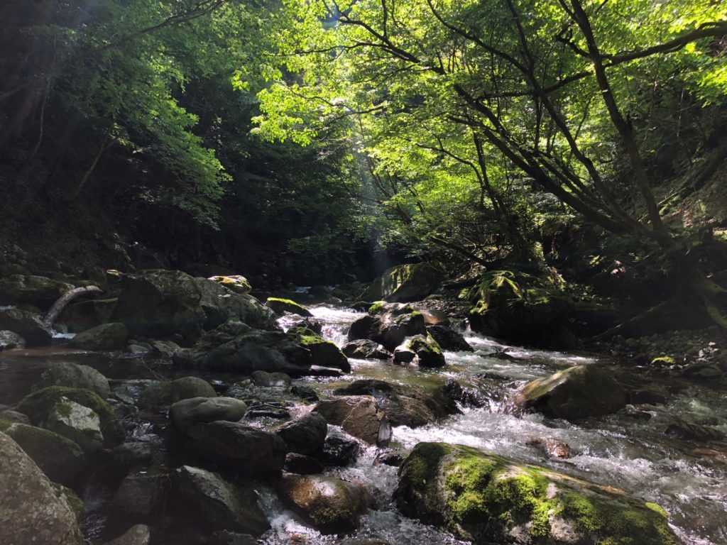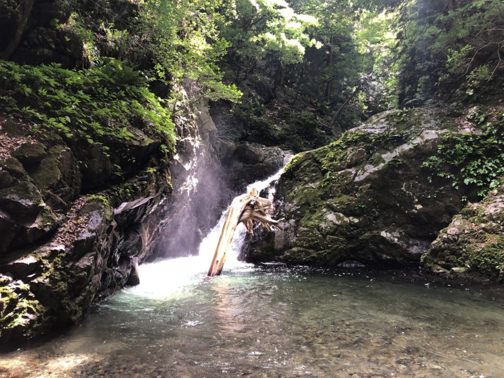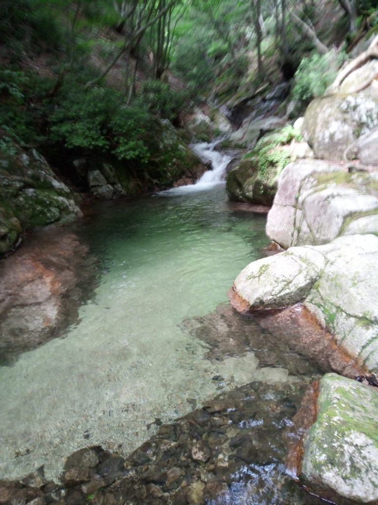 明王谷は意外に時間がかかって11時に抜けて奥深へ突入。いつもの場所でのんびりごはんをたべて綺麗な滝をみながら登山道の合流までいって登山道を下山。