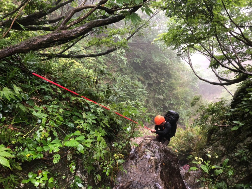 高丸からは沢を下降し、駐車場に向かう。途中一箇所の懸垂下降があった。