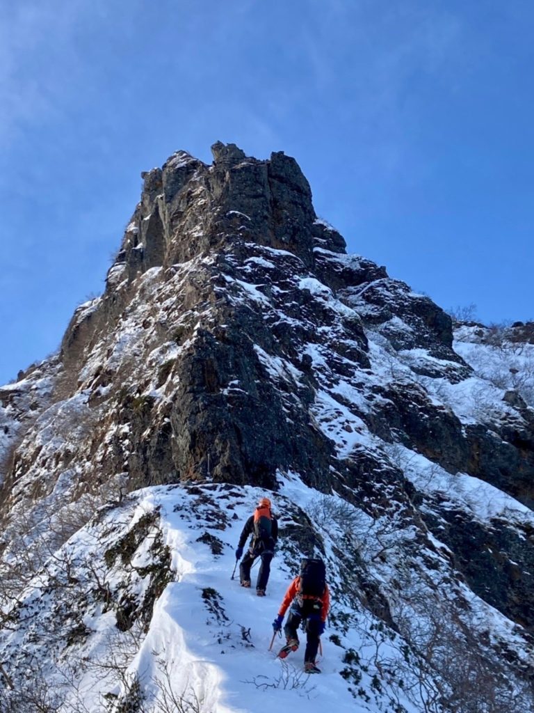 阿弥陀岳北西稜は、アプローチでのラッセル、中間部での雪稜、上部でのミックス帯。雪山の技術的な総合力が問われるルートです。