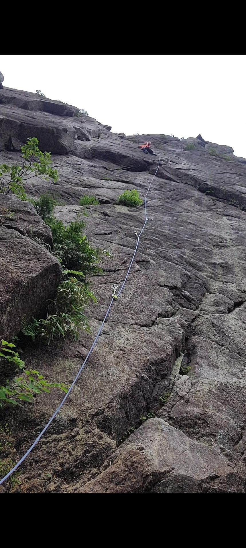 ルートは中間の小ハングを超えて細かいフェースを登るのが核心らしいのですが、核心は手を伸ばせば幸いガバに届いてしまったので登れてしまいました。