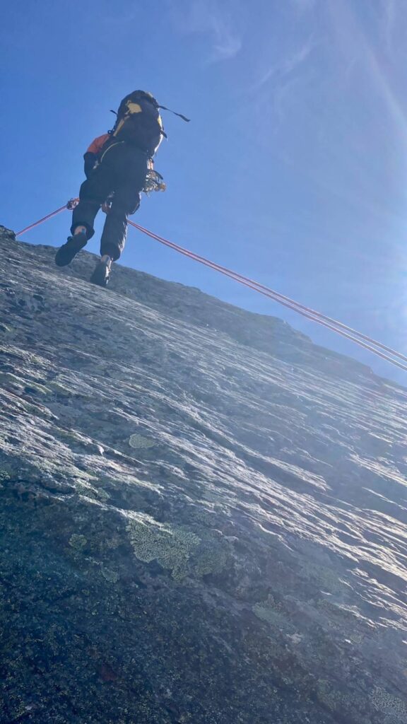 4pのフェイスはここまでフリーで突破してきましたが、「今日はアルパイン」と自分に言い聞かせてA0を多用し突破する。マッチ箱からの懸垂下降をする頃には、荷物の重さを忘れ、北岳バットレスを楽しんでいる自分がいました。