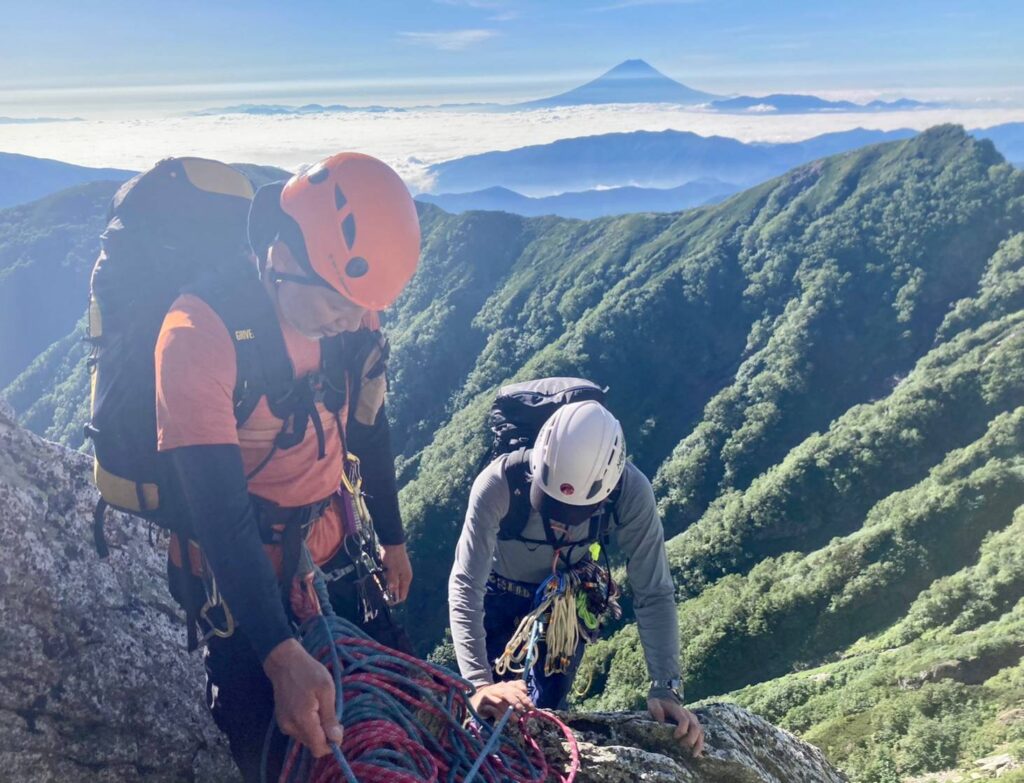 私にとっては初めての経験となる宿泊装備を担いでクライミングとなります。