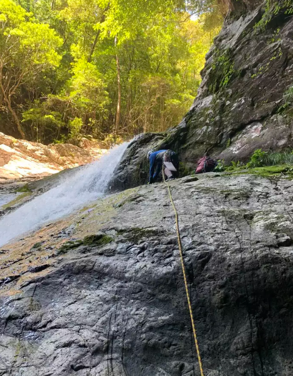 沢が始まるとしょっぱなから滝の連続。ほとんどの滝は巻いていく形になる。巻きといっても最後に懸垂があったりで、なかなか一筋縄ではいかない滝の連続。