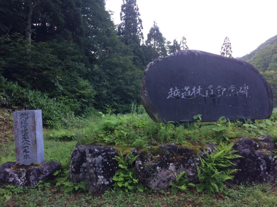 越道峠には立派な石碑があり、遭難碑もたっていた。中身を読むと釜に巻き込まれて亡くなった大学生の碑であった。なんだか嫌な予感がしてきたのお。。峠から踏み跡を辿って北又谷に降り立つ。