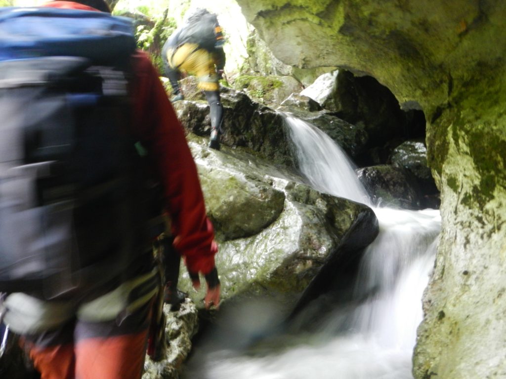 直登可能な小滝の連続の後に突然現れる石灰岩の岸壁、最後まで楽しめました。