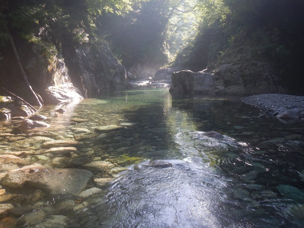 途中、めちゃくちゃ幸せそうな宿泊適地があり、予備日もあるのでここで泊まりたいとおもってしまった。しかし、時間もまだ泊まるには早いし、できるだけ進んでおこうということになって予定通りに進む。宿泊適地の上は岩魚の宝庫。警戒心がうすい初心な岩魚で、じゃぶじゃぶ水に入っているのに逃げない!しかも巨大な岩魚。。。。ぜったい釣れるやつやん。。泊まったら幸せだったろうなあ。今度があるかわからないが次はここに泊まろうと思った。