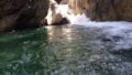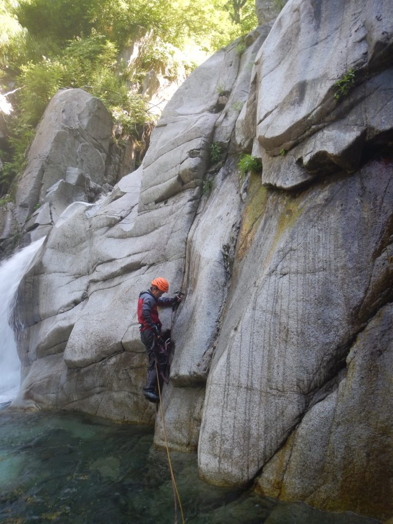 核心ともいえる滝を突破してからも落ちたらやばいところばかりをヘツリや泳ぎを交えてあるいていく。