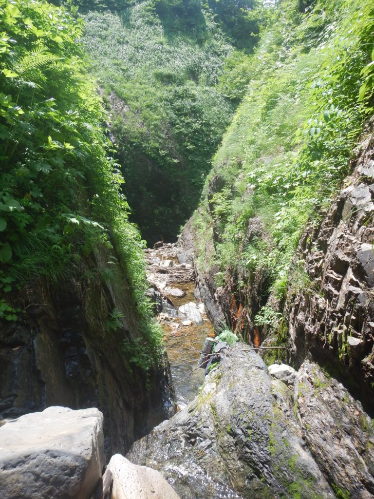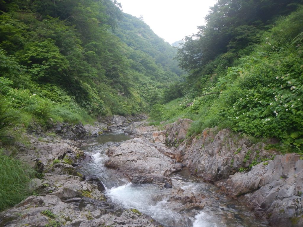 朝いちでサルガ滝を巻き、滝の上に降り立つと沢は源流の雰囲気になってきた。
