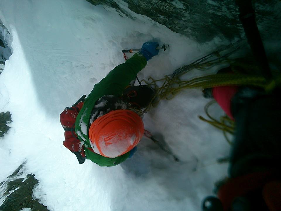 そして知らない間に最終ピッチ。あれ?こんなにすぐについたっけ?みたいな感じ。アブミでのっこした昨年と違い、右側から氷をつかって越えることが出来たがここは少し緊張した。