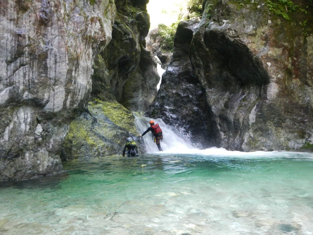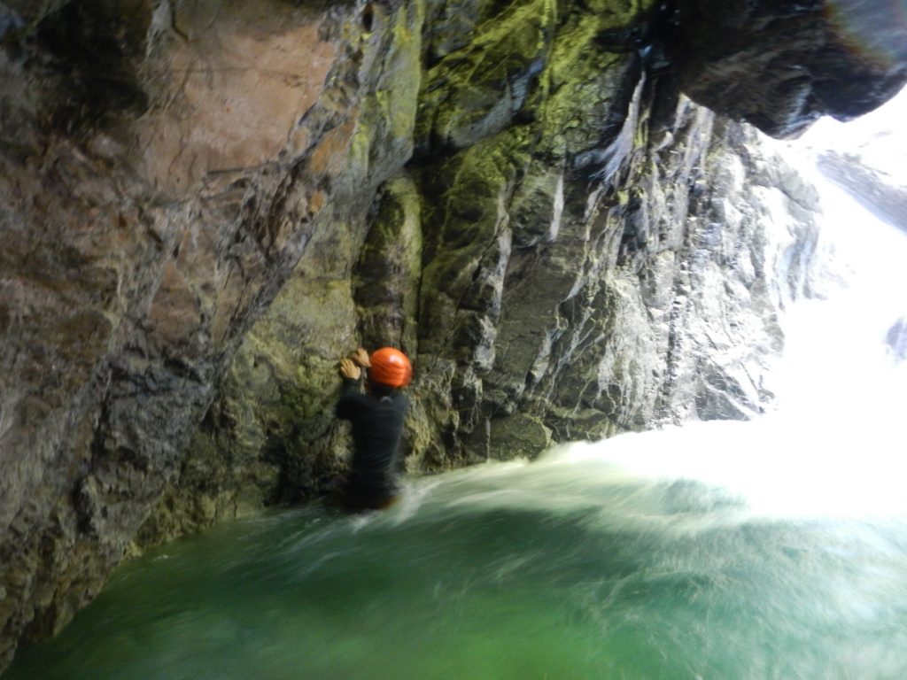 途中の滝は最初はトライしてみたものの、突破できずに右岸から巻いた。テープあり。